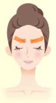 眉間を中心に、左右対称に横斜め上へと引き上げるようにトリートメント。ラインに沿って髪の生え際までおでこ全体をケア