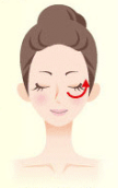 目じりや目の下など、気になりやすい部分もやさしくケア。目じりはクルクルとまわすように、そして目の下から