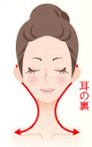 気になるデコルテラインや首筋をケアします。デコルテラインを上から下に、耳の裏から首筋に沿って上から下へと左右ともにトリートメント。